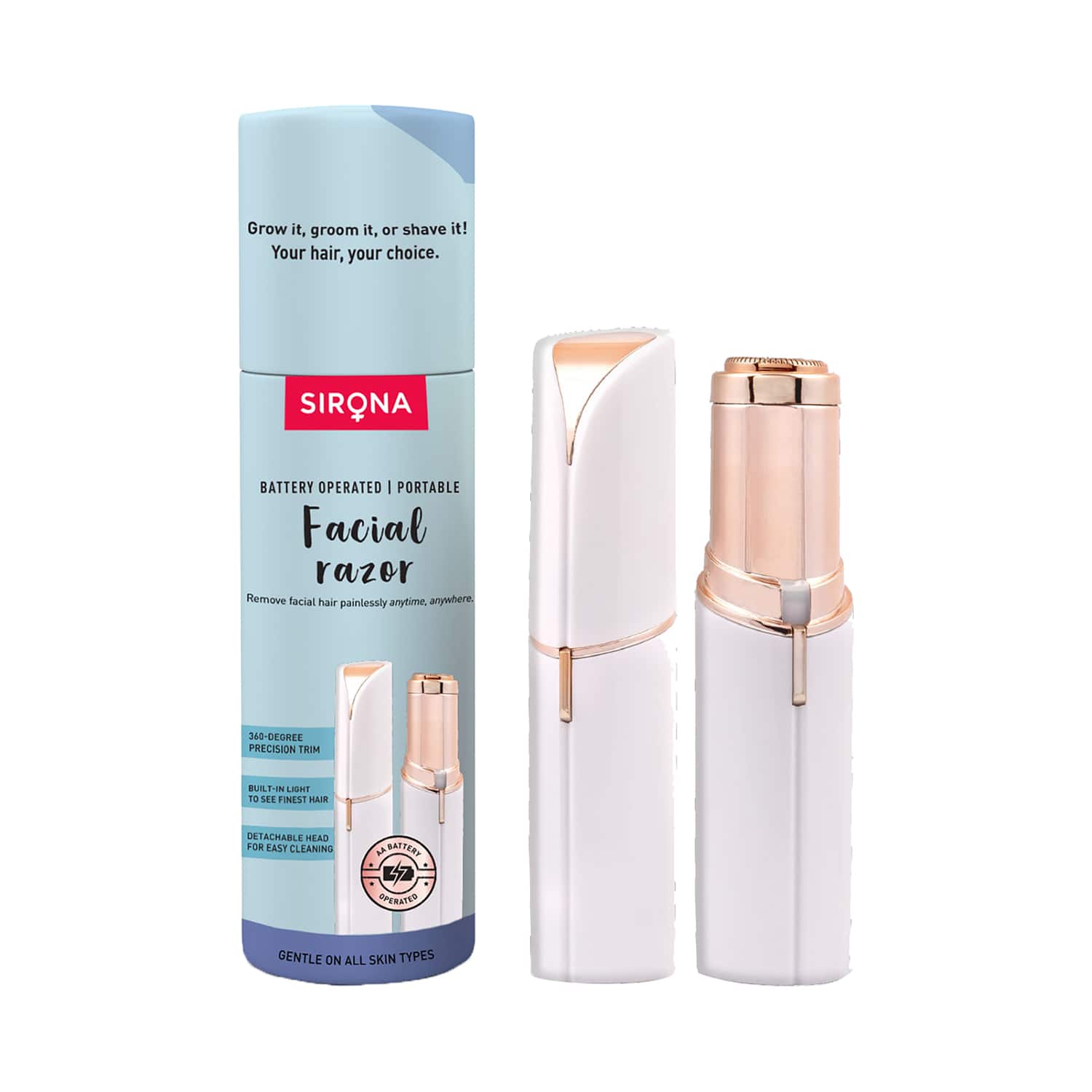 Make facial hair removal an easy task with the Sirona Electric Facial Razor. This battery-operated facial razor is portable and travel-friendly, so you can take it anywhere. It features a built-in light that lets you see where you're shaving before you nick yourself. And last but not least, this Sirona electric razor ensures 360 degrees of precision for quick and irritation-free results.Key Features & Benefits:Ergonomically designed to provide 360-degree precisionBuilt-in light helps in making precise cutsTravel friendly build for easy portabilityBattery operated for on-the-go useHow to Use:Wash your face and dry it with a soft towel. Switch on the trimmer. Then, pull your skin and apply the precise tip of the trimmer on any area of your face, laying flat. Move it in a small circular motion. After finishing, wash your face again and apply a soothing gel.About the Brand:Founded in 2014, Sirona is a personal care and hygiene brand started by Deep Bajaj and Mohit Bajaj. It is an award-winning product innovation brand committed to curating innovations and solutions regarding feminine hygiene, from puberty to menopause, which is not sufficiently addressed in the country. Their products include menstrual cups, pads, tampons, maternity pads, disposal bags, body razors, and much more. Sirona products are free of toxins and are designed with eco-friendly materials for safe and sustainable use. The brand has two sister companies, BodyGuard and PeeBuddy. BodyGuard offers general hygiene products for health and wellness, while PeeBuddy provides a range of innovative toilet hygiene products that ensure convenience and comfort in any public toilet. Focused on empowering women through hygiene and eradicating period poverty, Sirona has marked its place at the frontline of feminine hygiene brands.