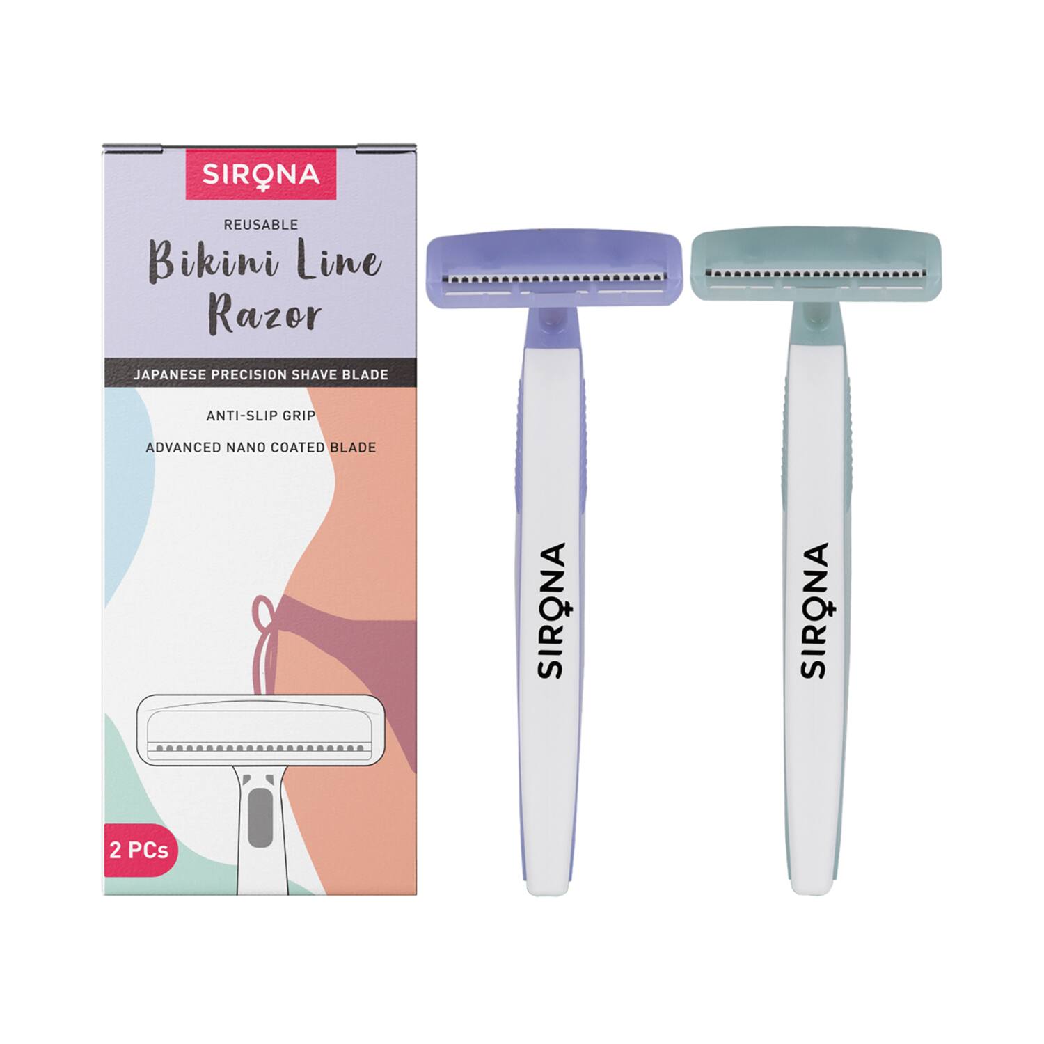 Sirona Reusable Bikini Hair Removal Razor For Women - White, Blue, Grey (2 Pcs)