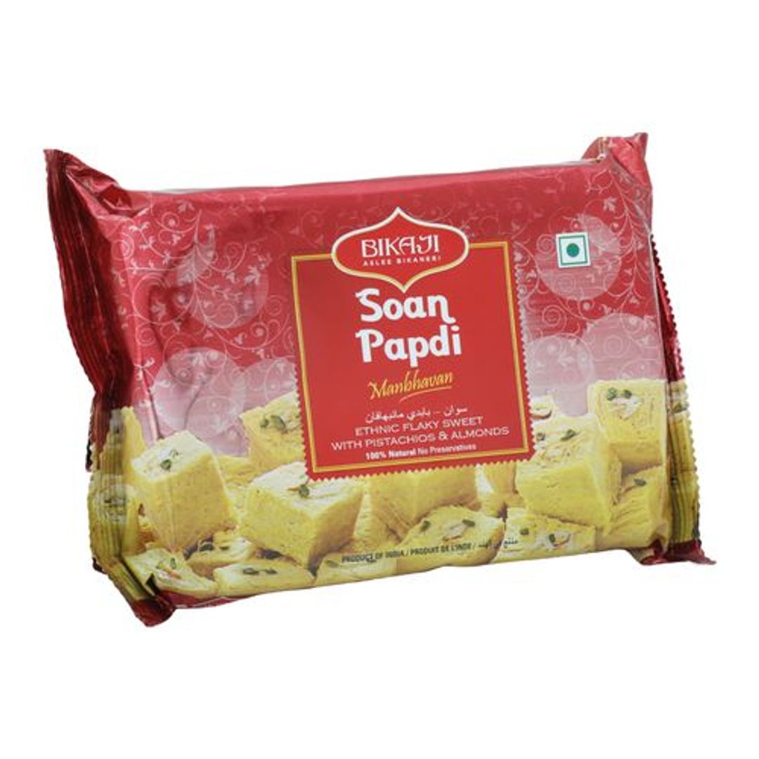 Sohan papdi (son papri or soan papdi) is a popular north indian dessert. It is usually cube-shaped or served as flakes, and has a crisp and flaky texture.