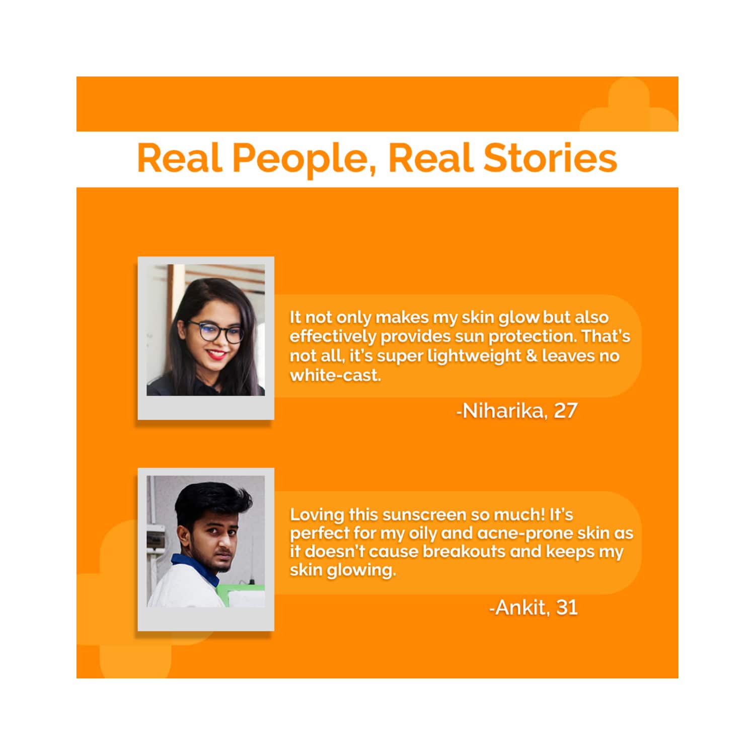 Prepare for a sun-kissed look with the The Derma Co. C-Cinamide Radiance Sunscreen Aqua Gel With SPF 50 PA++ (50g). This lightweight sunscreen quickly absorbs into your skin without leaving it feeling sticky or drying out. It offers broad-spectrum protection so you can stay protected all day without discomfort. And finally, this Derma Co. sunscreen leaves no white cast and is oil-free, making it perfect for everyday use!