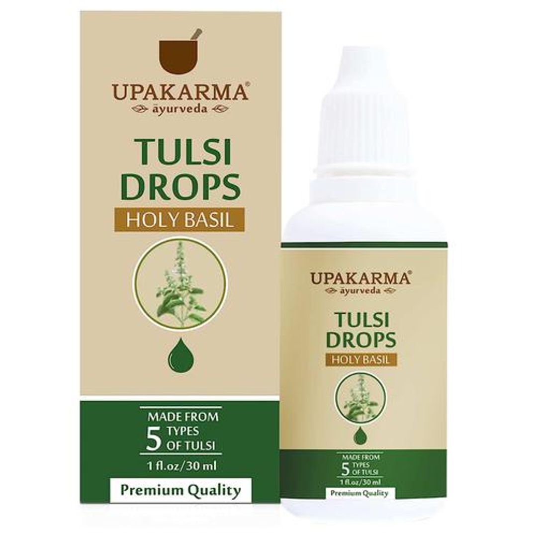 Upakarma Ayurveda Tulsi drops are free from any preservatives & artificial colors. It is a pure & natural Ayurvedic product. Upakarma Ayurveda 100% organic & authentic Tulsi drops is a unique formulation infused with the goodness of pure tulsi extract. Its unique formulation is attained through careful & sophisticated processing of the very best quality tulsi leaves. Tulsi plant has been given ‘holy’ status largely due to its tremendous medicinal properties.
