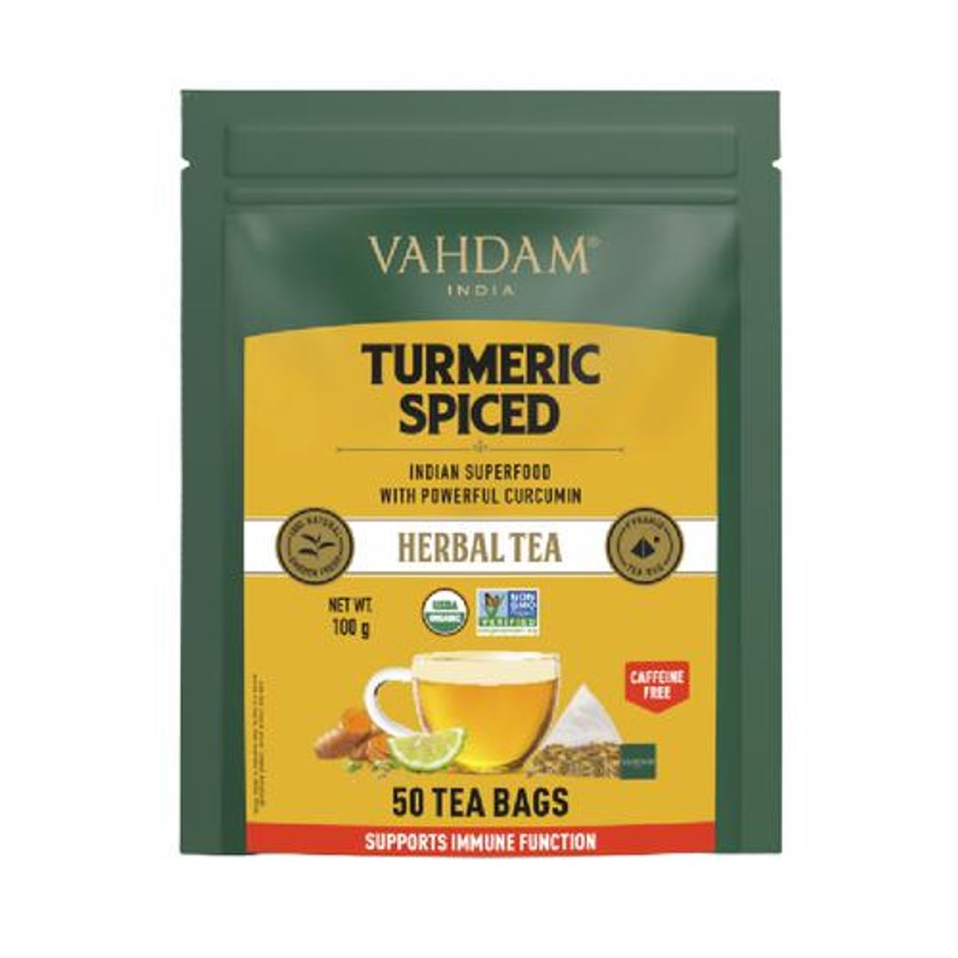 - MAGIC BLEND - A blissful blend infused with the goodness of the "magic herb" turmeric, cinnamon, black pepper, clove making it healing, rejuvenating & energizing herbal tea. - 50 FULL-LEAF PYRAMID TEA BAGS - Gone are the days of paper tea bags that tear up in the brew. 1 box of Turmeric Spiced Herbal Tea contains 50 sturdy pyramid-shaped tea bags for a fresher, flavorful brew.