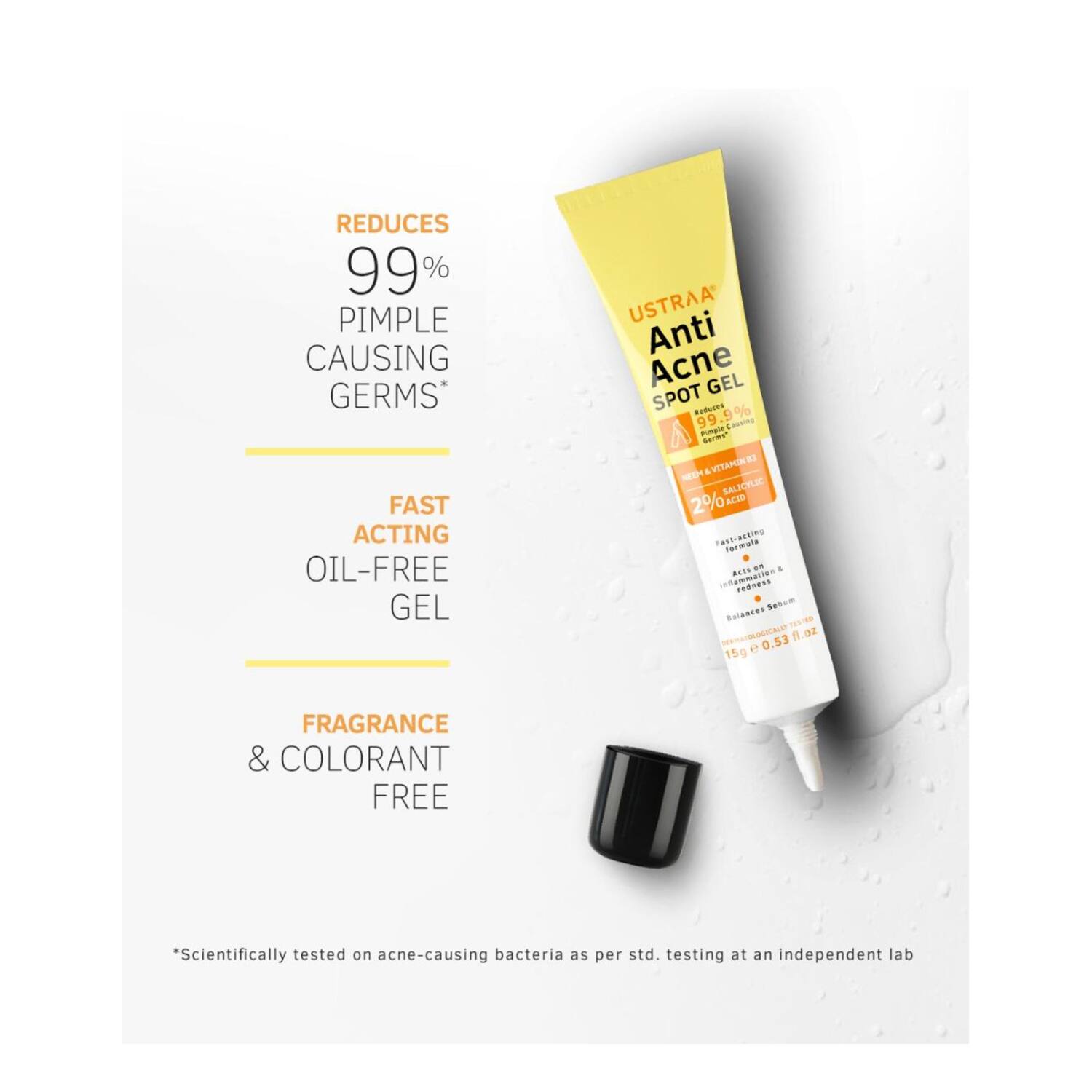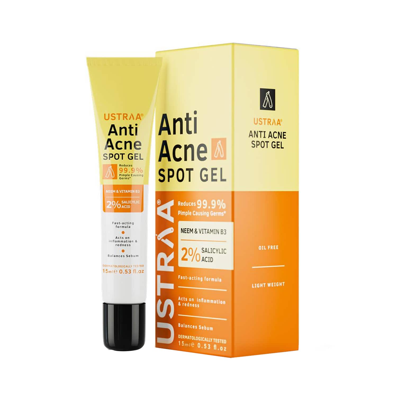 The Ustraa Anti Acne Spot Gel (15ml) is ideal for keeping your skin in its prime. This lightweight gel contains a perfect blend of anti-acne ingredients and neem extract that effectively controls oil and prevents acne. It absorbs quickly into the skin and delivers long-lasting benefits. Fragrance-free, this Ustraa spot gel is comfortable to wear all day without irritating your skin.