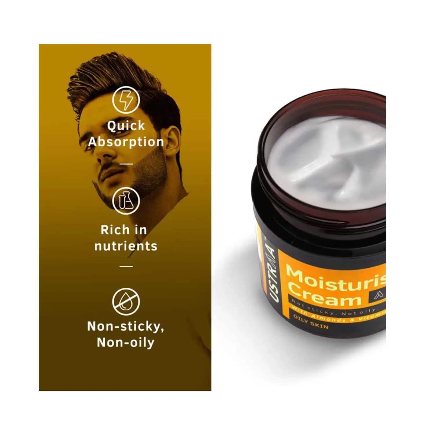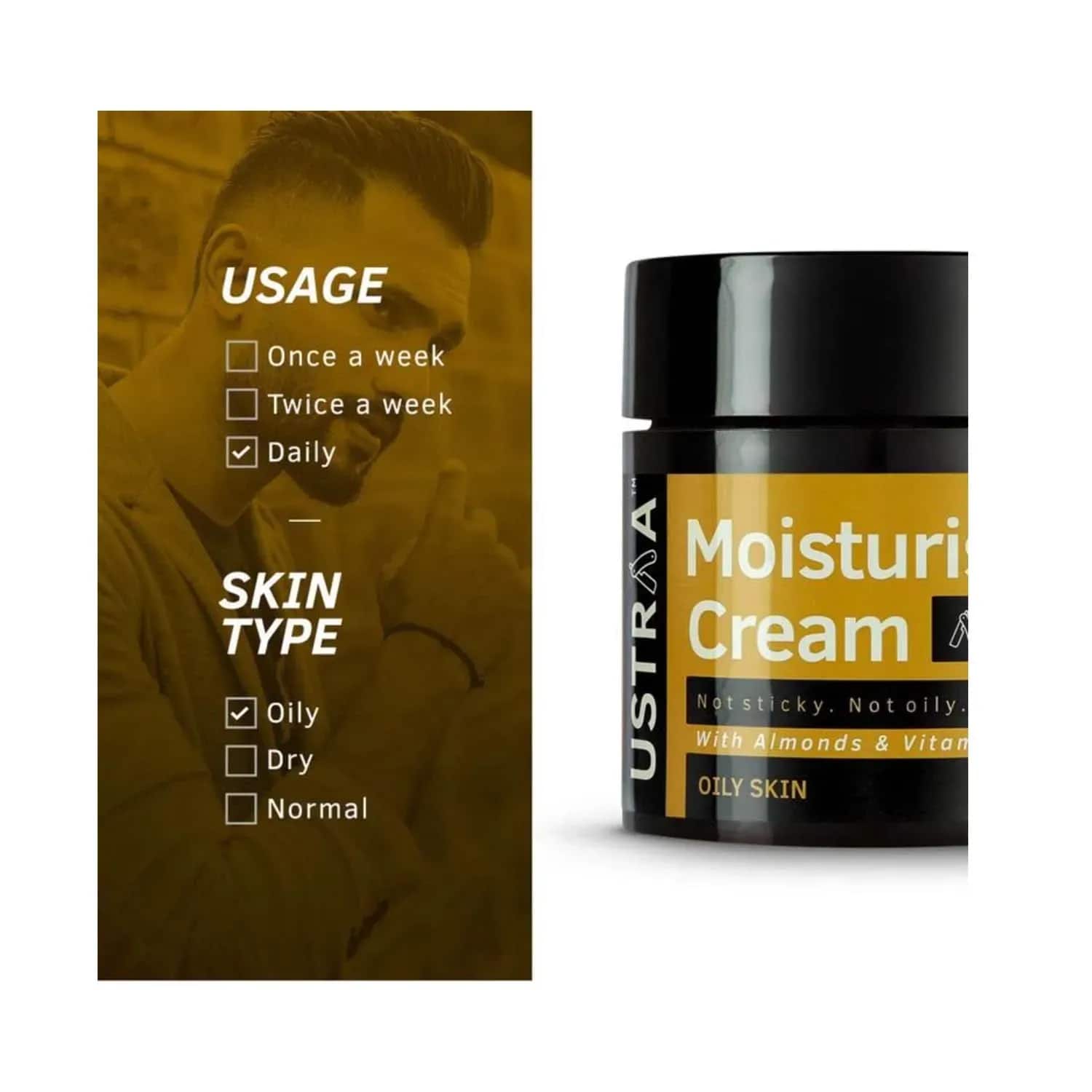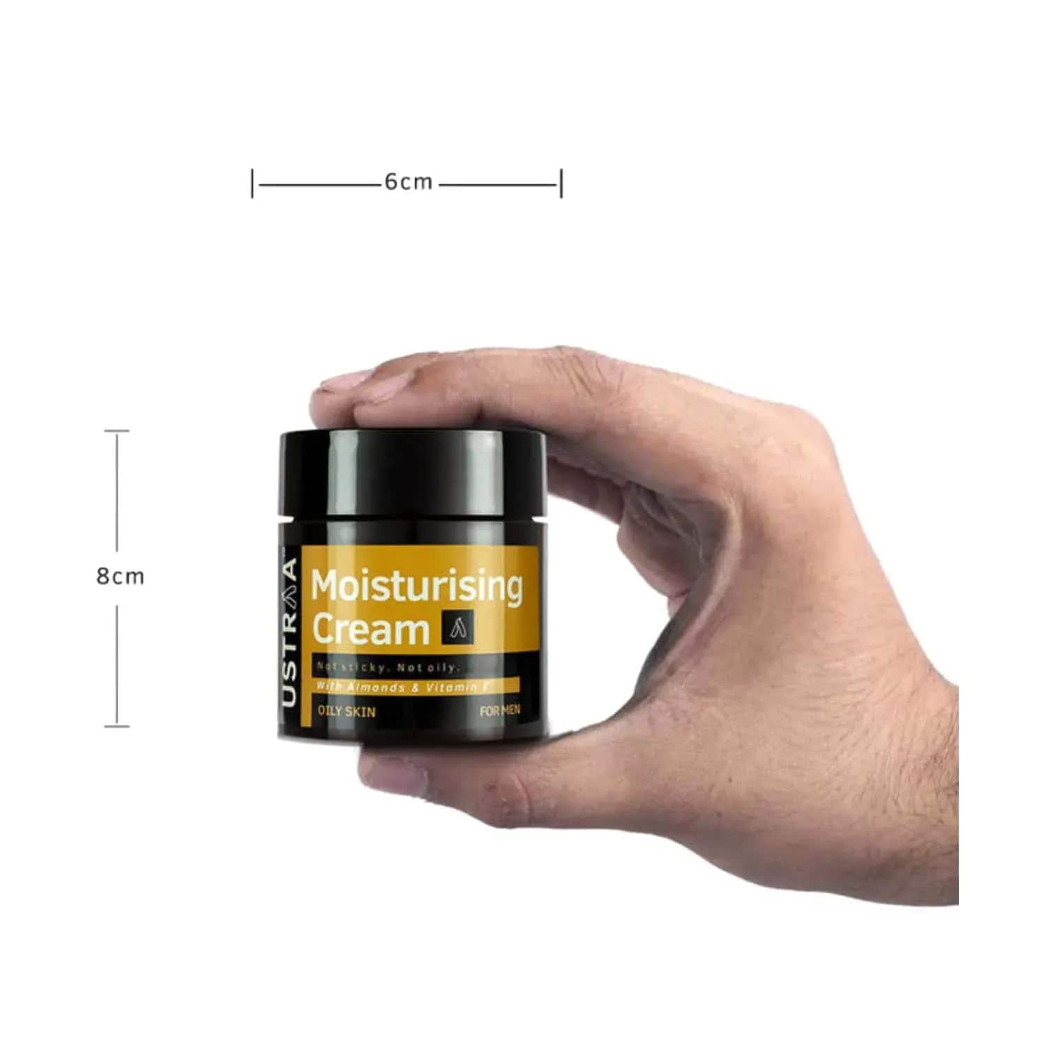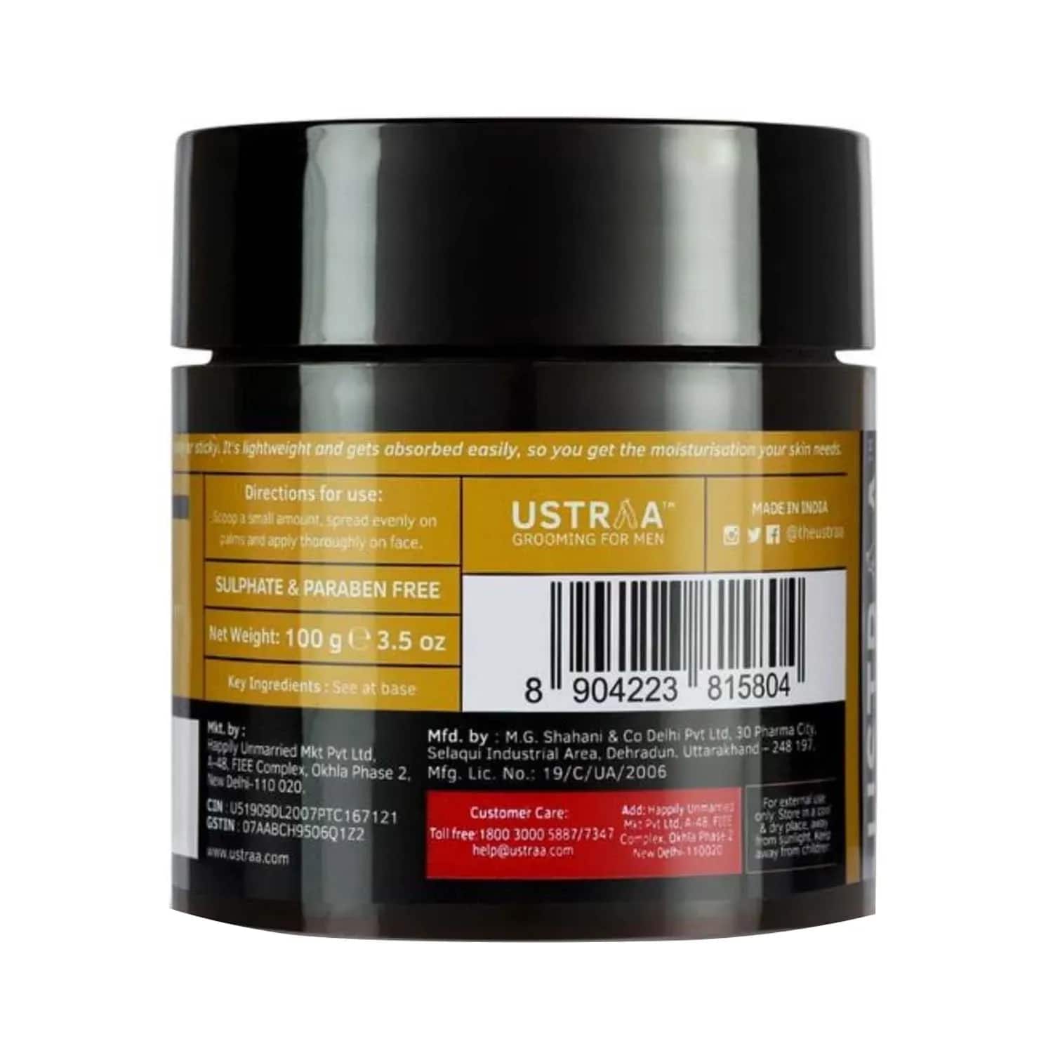 Get glowing skin with the Ustraa Moisturising Cream - (100g). It is enriched with skin-friendly nutrients that nourish your skin to keep it healthy. This Ustraa cream has a quick-absorption formula and does not feel sticky after application. It is ideal for oily skin.Key Features & Benefits:Moisturising cream offers glowing skinLightweight cream for quick absorptionEnriched with nutrients that nourish your skinNon-sticky cream that does not feel oily after applicationKey Ingredients:Shea butter: Moisturises your skin Brassica plant extract: Provides sun-damage protection Olive oil: Rejuvenates your skinHow to Use:Take a small amount of the product in your palm and gently apply it to your face.All Ingredients:Shea Butter, Brassica Plant Extract, Canola Oil, Olive OilAbout the Brand:Founded in 2015, Ustraa was launched by Rajat Tuli and Rahul Anand. The brand boasts a wide range of grooming and skin-care products for men. It aims to cater to men who wish and strive to look their best. Ustraa offers products that are formulated and conceptualised in their in-house laboratory and are free from any harmful chemicals to ensure safe use.Check out more Ustraa Face Moisturiser options here, or browse through tokocart's full range of Face Moisturiser from top global brands.You can also explore other products from the world of Ustraa here on tokocart.