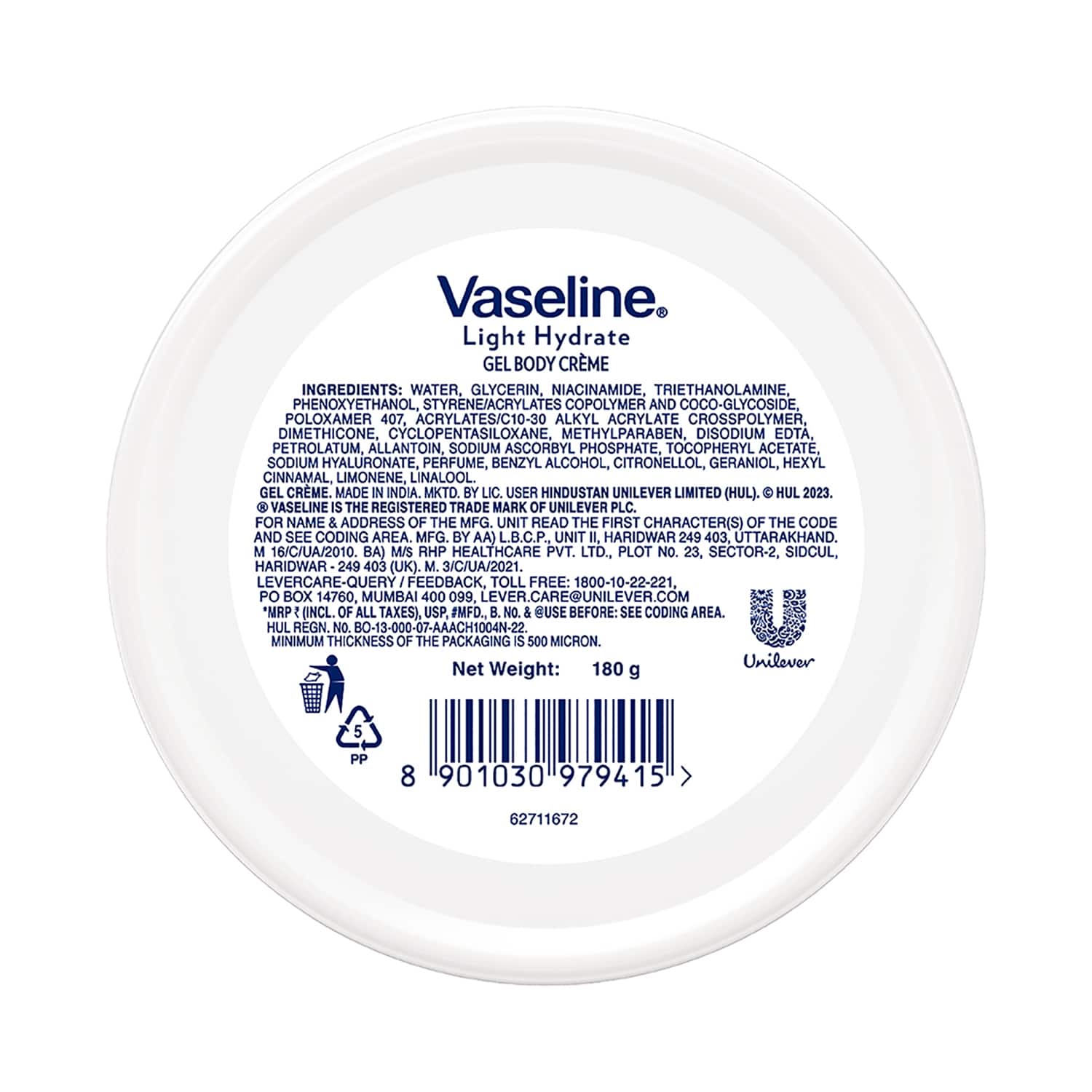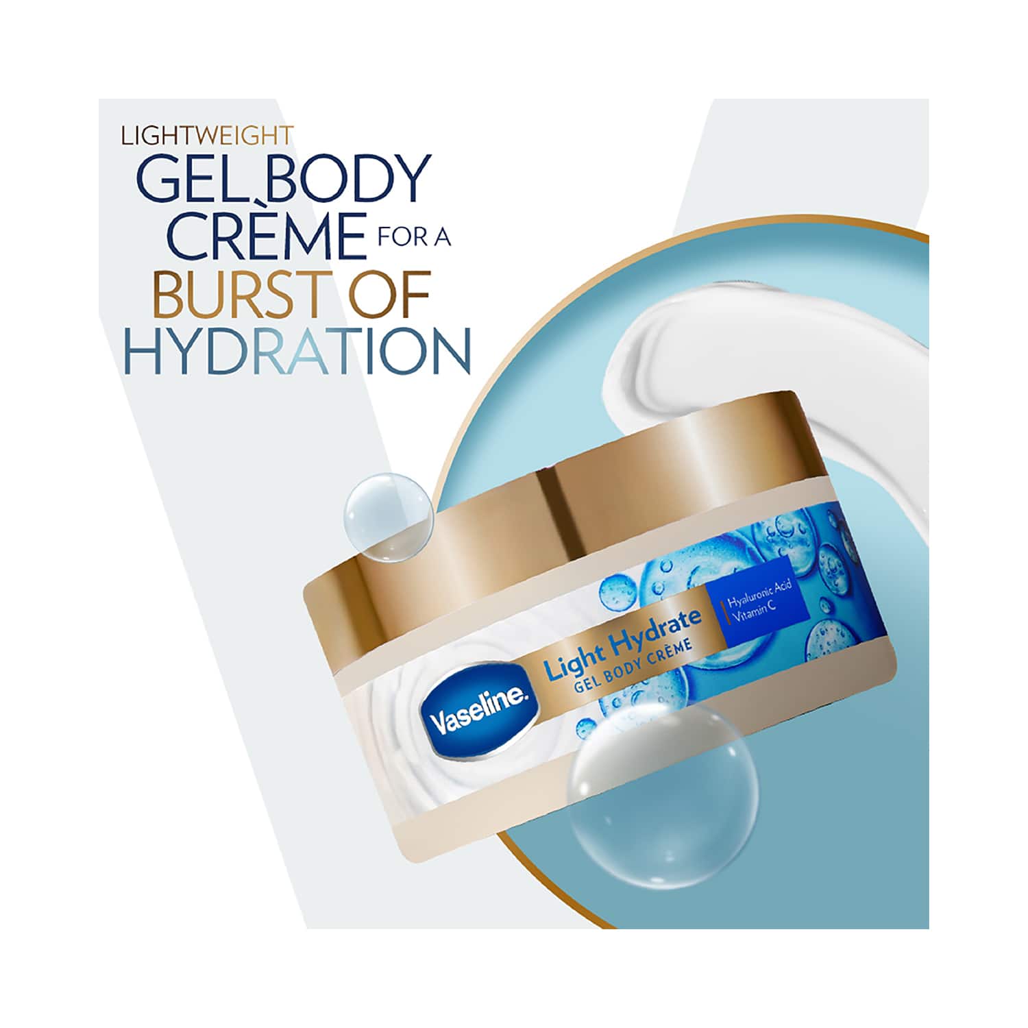 Vaseline Light Hydrate Gel Body Creme with Hyaluronic Acid & Vitamin C for Hydrated Skin (180g)