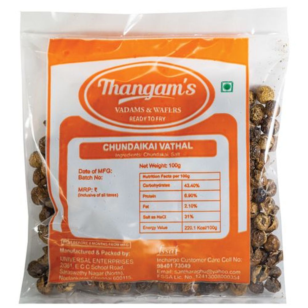 Vathal is a delicious sun-dried delicacy. Just deep-fry it in oil and you're all set to enjoy it as a side dish. These traditional natural South Indian homemade vathals are prepared without any preservative and colour agents. They are crispy and delicious in taste.