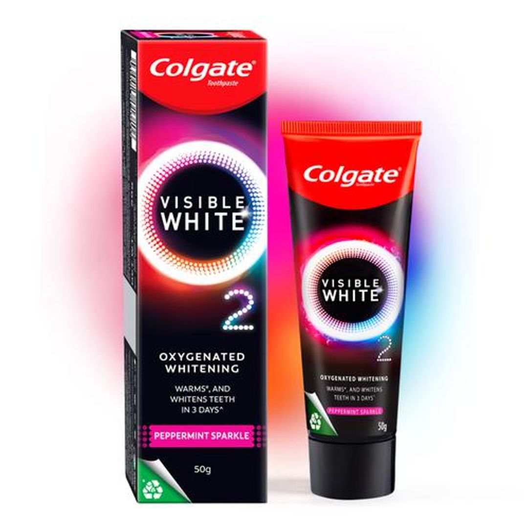 Colgate-Palmolive presents a revolutionary new Oral Beauty essential - Visible White O2. Formulated with a patented Active Oxygen-based tooth whitening technology. It starts whitening teeth in 3 days (when used as directed on pack). As soon as you brush, Colgate Visible White O2 Toothpaste gives off a warming effect inside your mouth. Along with this, it releases a gentle wave of ultra-fine whitening foam - that’s the Active Oxygen. The millions of active oxygen bubbles get absorbed gently into your enamel and whiten teeth from the inside out!