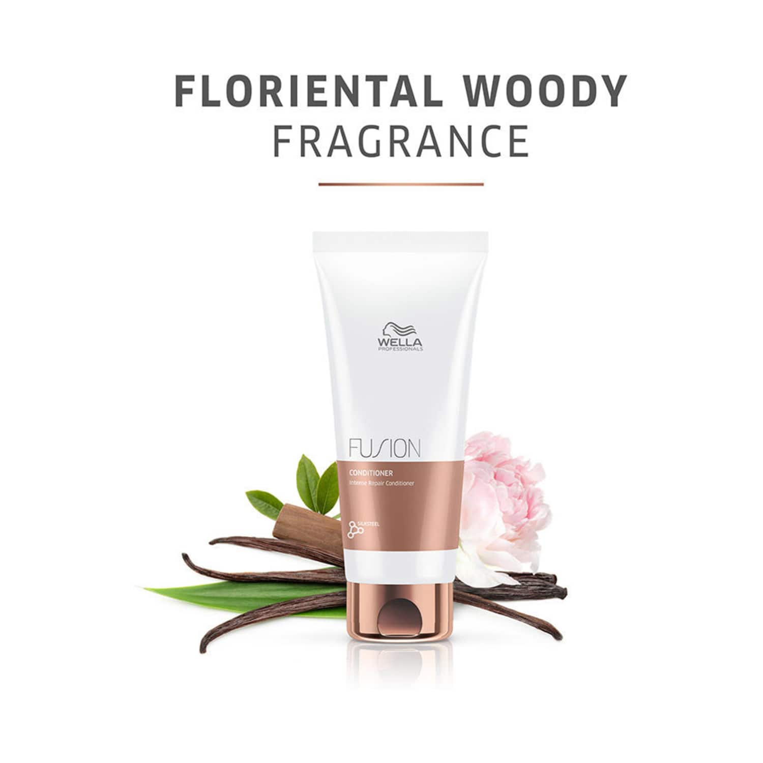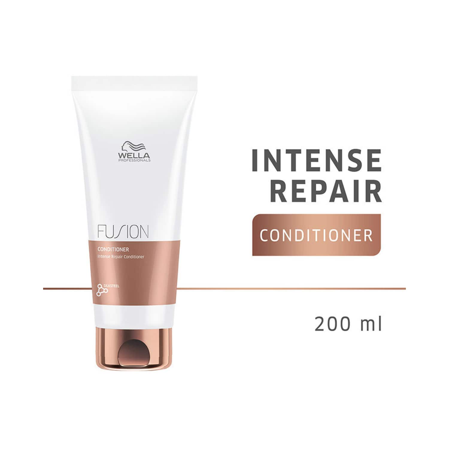 Enhance your hair health with the Wella Professionals Fusion Intense Repair Conditioner (200ml). This repairing hair conditioner contains silk amino acids to help protect your strands from breakage by strengthening your hair follicles. It deeply repairs and nourishes your hair for a healthy look and feel. Plus, this Wella Professionals hair conditioner penetrates deep into the hair follicles, leaving your locks silky soft, and manageable.Key Features & Benefits:Contains silk amino acids to help strengthen your hairHelps repair and nourish damaged hairProtects against breakage and keratin lossIntensely moisturizes your hairKey Ingredients:Silk amino acids: Nourish and strengthen hairAll Ingredients:Aqua, Stearyl Alcohol, Behentrimonium Chloride, Cetyl Alcohol, Bis-Aminopropyl Dimethicone, Parfum, Isopropyl Alcohol, Phenoxyethanol, Benzyl Alcohol, Methylparaben, Propylparaben, Disodium Edta, Hexyl Cinnamal, Linalool, Benzyl Salicylate, Limonene, Citric Acid, Alpha-Isomethyl Ionone, Histidine, Glycine, Alanine, Hydrolyzed SilkHow to Use:Shampoo your hair and rinse off well. Apply a small amount of conditioner to your scalp and hair strands. leaf it for 1 minute and rinse well for softer and bouncier hair.About the Brand:Wella Professional is a beauty and hair care brand founded by Franz Ströher in the year 1880. The brand's vision is to empower individuals to look, feel, and embrace their true selves. Their range of products includes shampoos, hair oils, hair gels, hair waxes, and much more. They source premium-quality ingredients in their formulations to suit every skin and hair type.Check out more Wella Professionals Conditioner options here, or browse through tokocart's full range of Conditioner from top global brands.You can also explore other products from the world of Wella Professionals here on tokocart.