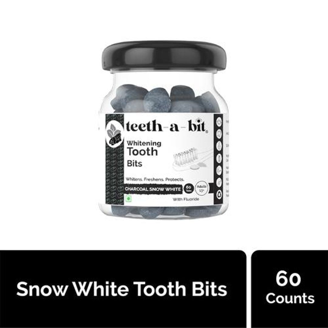 "Teeth-a-bit Charcoal Snow White Whitening Tooth Bits is an ayurvedic formulation in combination with modern science that helps in solving most of the teeth problems faced by adults and children. It is a unique combination of bamboo charcoal that is a natural effective anti-stain detoxifier and sodium hexametaphosphate which is a clinically proven whitening agent. It uses zero SLS, dyes, preservatives, peroxides, parabens, alcohol, artificial flavours and colours for the purpose of an all-natural and healthy teeth-whitening formula. It is easy to use and is regarded as India’s first environmentally conscious oral care brand. Explore the product which is available on tokocart and have your teeth whitened on the go. "