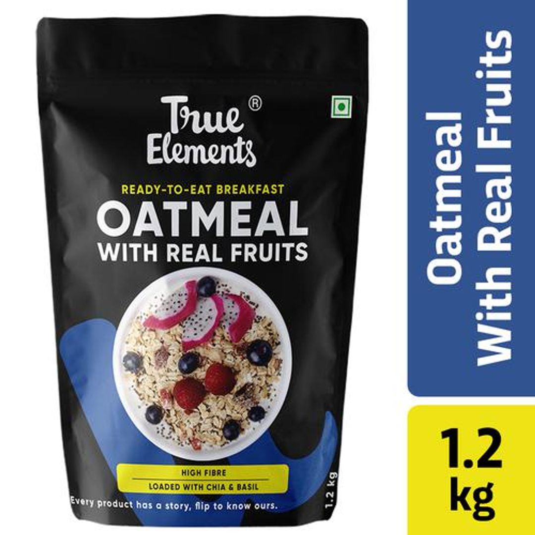 True Elements brings to you Whole Oatmeal with Chia, Fruits that are loaded with health benefits and nutrients. It has dietary fibre, protein and vitamins. It is made with vitamin-rich oats that can be relished with chilled milk blended with real fruits, nuts. Oatmeal provides you with the required energy, can keep your hunger pangs at bay. Have it with milk and some honey for your breakfast.